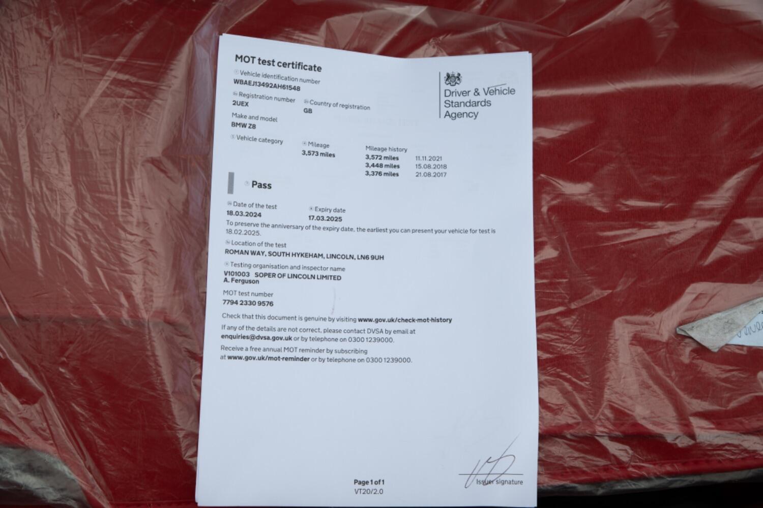 The car presents in exemplary condition having been in professional storage since its arrival. Showing just over 3500 on the clock since new, this particular Z8 has been consistently serviced by Soper BMW throughout its time in the UK and a recent advisory-free MOT in 2024 at 3,573 miles.