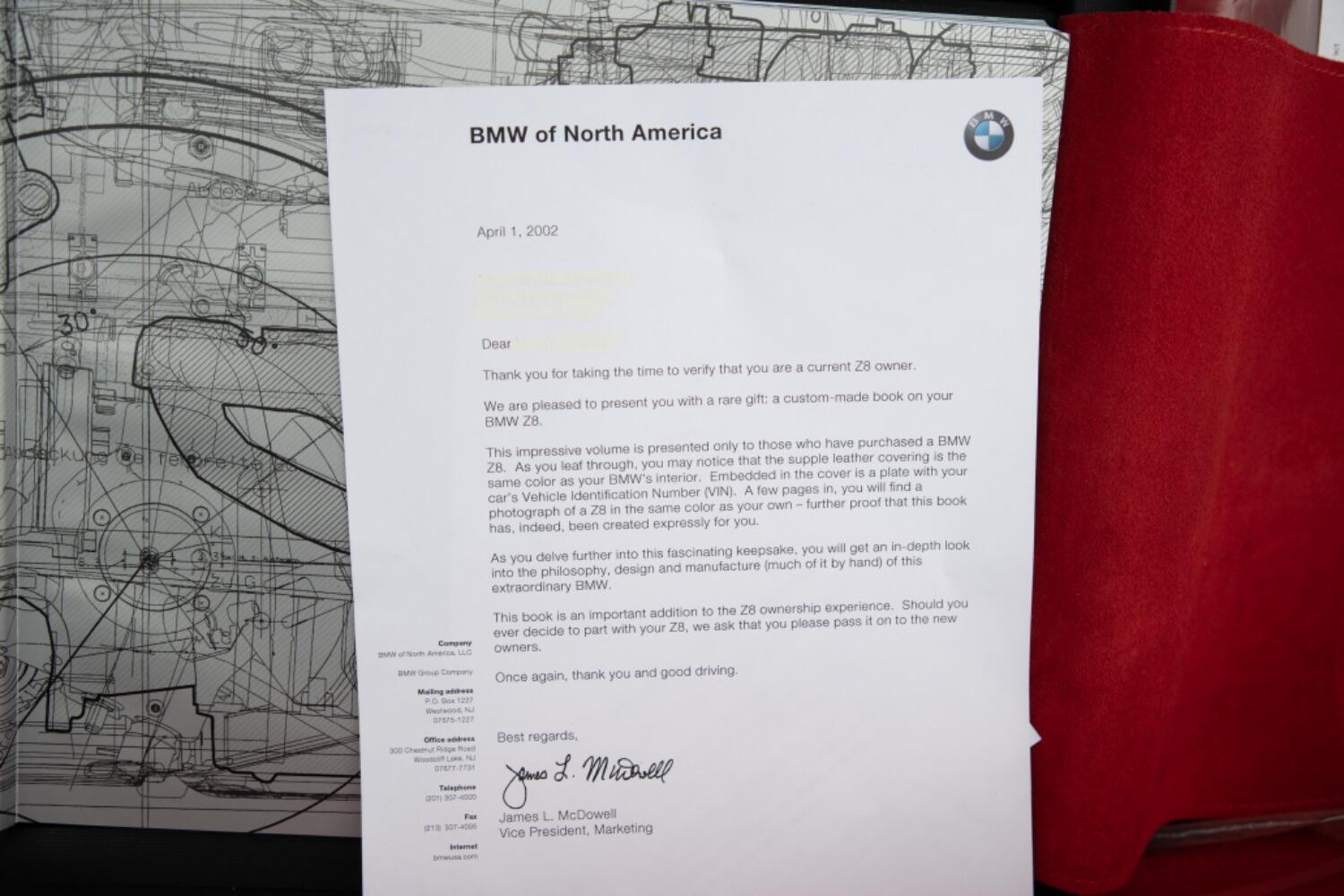 The car is supplied with the much sought after Z8 coffee-table book as well as an exact scale model of the car. Also included are spare original interior mats and number-plate cover.