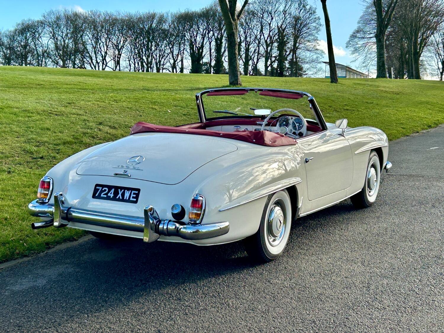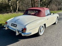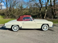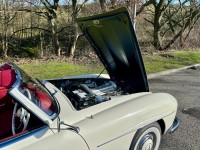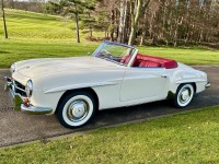 We are thrilled to showcase this remarkable 1961 Mercedes 190SL RHD, elegantly finished in DB050 White with a striking Red Leather interior. This vehicle holds a unique history, having been previously owned by Olympic Studios in London, renowned in the 1960s as one of the premier recording studios. It hosted legendary artists such as Jimi Hendrix, the Beatles, the Rolling Stones, David Bowie, Led Zeppelin, Ella Fitzgerald, and Queen, among many others.